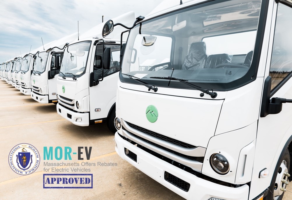 Managed by the Executive Office of Energy and Environmental Affairs’ Department of Energy Resources and administered statewide by the Center for Sustainable Energy (CSE),the MOR-EV program is dedicated to making electric vehicles more affordable for Massachusetts residents, businesses and non-profit organizations to help achieve clean transportation goals, reduce greenhouse gas emissions and provide more equitable access to EVs. The MOR-EV Trucks program incentivizes purchases and leases of a variety of medium- and heavy-duty battery electric and fuel cell electric trucks, buses and vans. Rebates apply to both individual and fleet acquisitions.